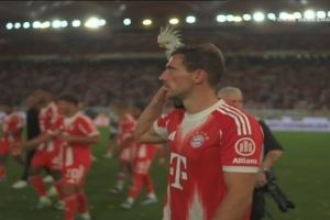 此役格雷茨卡为拜仁首发出战,帮助球队夺冠,赛后他肩上扛着鹦鹉饰品庆祝。