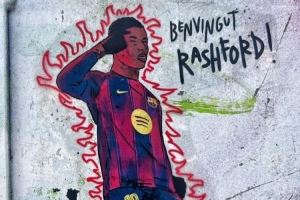 而最新消息显示,巴塞罗那街头也已经出现了相关涂鸦并配文“欢迎,拉什福德”,身披巴萨球衣的拉什福德摆出了标志性的滑跪庆祝动作。